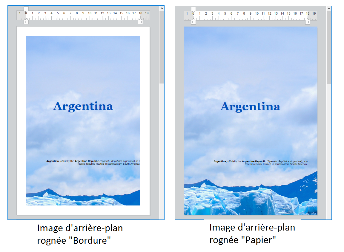 Voici un exemple montrant deux façons différentes d'utiliser une image comme arrière-plan d'un document :