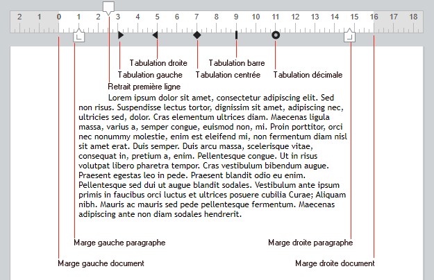 - Tabulations affichées sur le bord inférieur de la règle