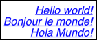 $text:="Hello world!\rBonjour le monde!\rHola Mundo!"