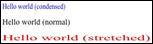 The optional stretching parameter can be used to specify a horizontal stretching (value >1) or condensing (value included between 0 and 1) factor of the text.