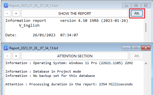 If there is at least one Attention detected in the report, a button “Att.” is also enabled (top right)