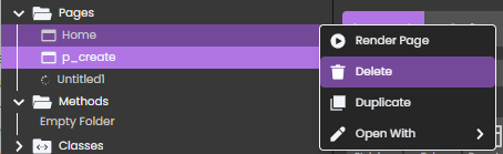 Le renommage et la suppression d'une page Qodly ne peuvent être effectués que dans l'éditeur de pages de Qodly Studio.
