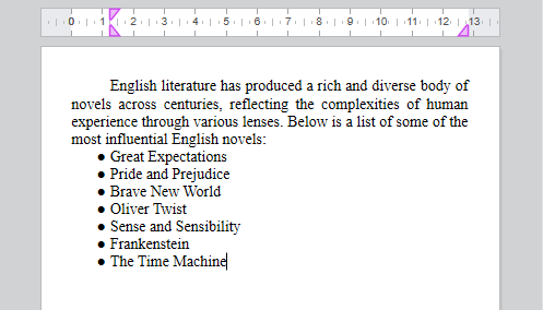 When a list is created using a standard action (listStyleType or listStyleImage) or the toolbar/sidebar, 4D Write Pro automatically inserts a margin before the text so that the marker is positioned inside it. The value of the inserted margin corresponds to the offset of the default tab (wk tab default).